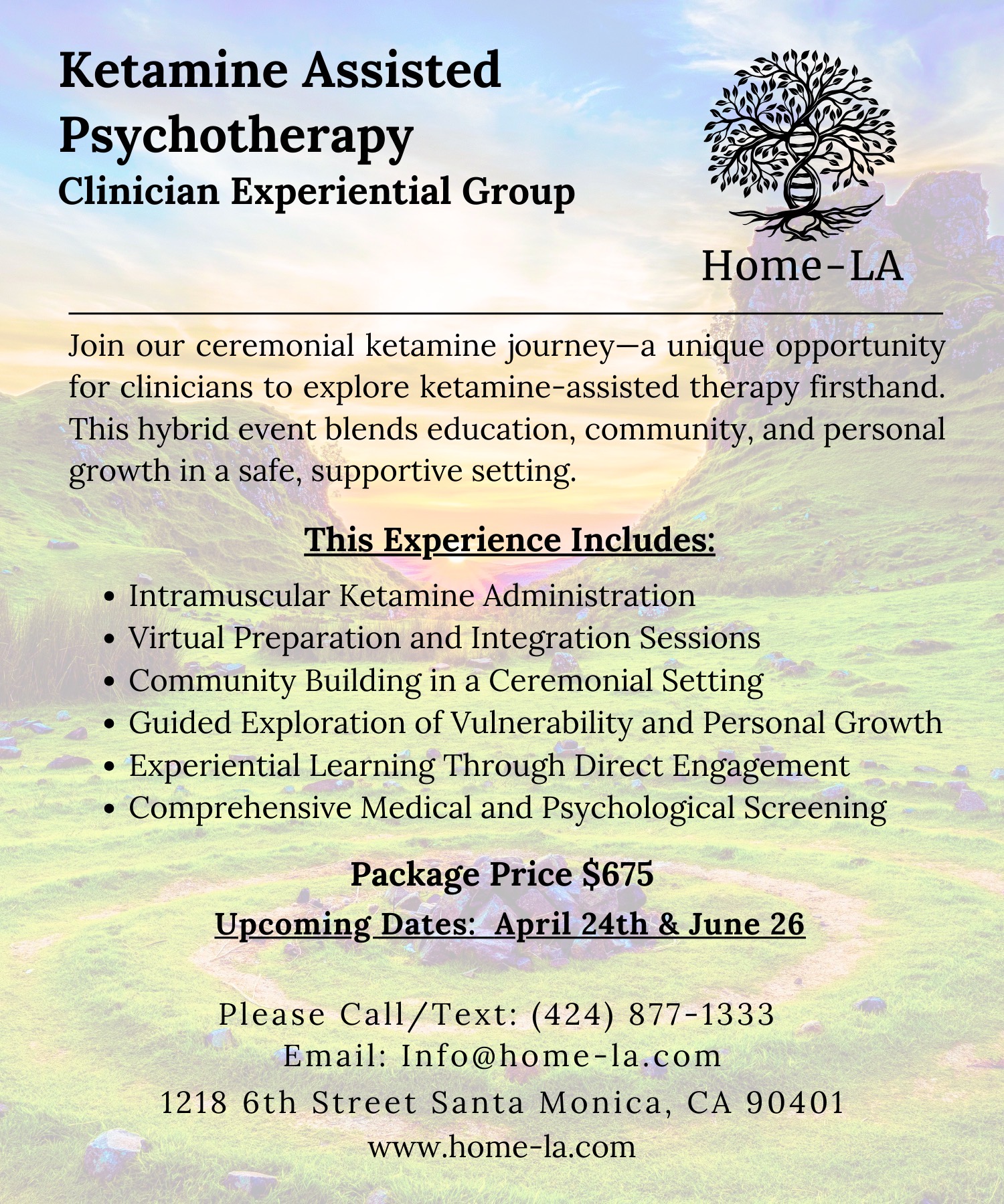 Group Ketamine Learning and Healing Experience Join our ceremonial ketamine journey – a unique opportunity for clinicians to explore ketamine-assisted psychotherapy firsthand. This hybrid event blends education, community, and personal growth in a safe, supportive setting. Group Meeting #1: One-hour informative Q&A and preparatory session over Zoom. This gives us the opportunity to connect, discussion intentions, expectations and prepare for the journey ahead. Group Meeting #2: Three-hour journey utilizing intramuscular ketamine. This begins with a check in to reconnect and reorient ourselves to the space, the intention and the group. We then drop in with a grounding meditation to arrive into the space together, followed by ketamine administration companioned by a psychedelic sound track. Group Meeting #3: One-hour integration. This involves a group reflection over Zoom on your ketamine experience and is a [...]