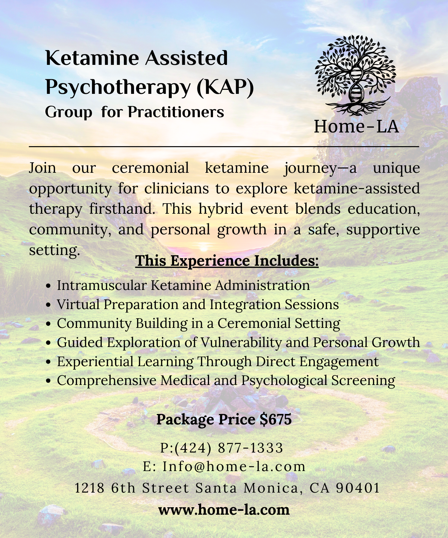 - Clinician Experiential: ceremonial ketamine journey—a unique opportunity for clinicians to explore ketamine-assisted therapy firsthand. This hybrid event blends education, community, and personal growth in a safe, supportive setting.